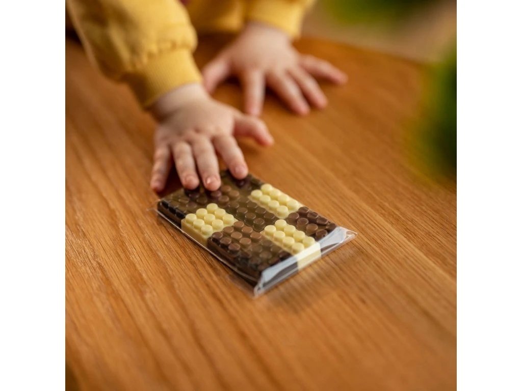 Složení: kakaová hmota, kakaové máslo, sušené mléko, cukr, emulgátor: sójový lecitin, aroma: přírodní vanilka.