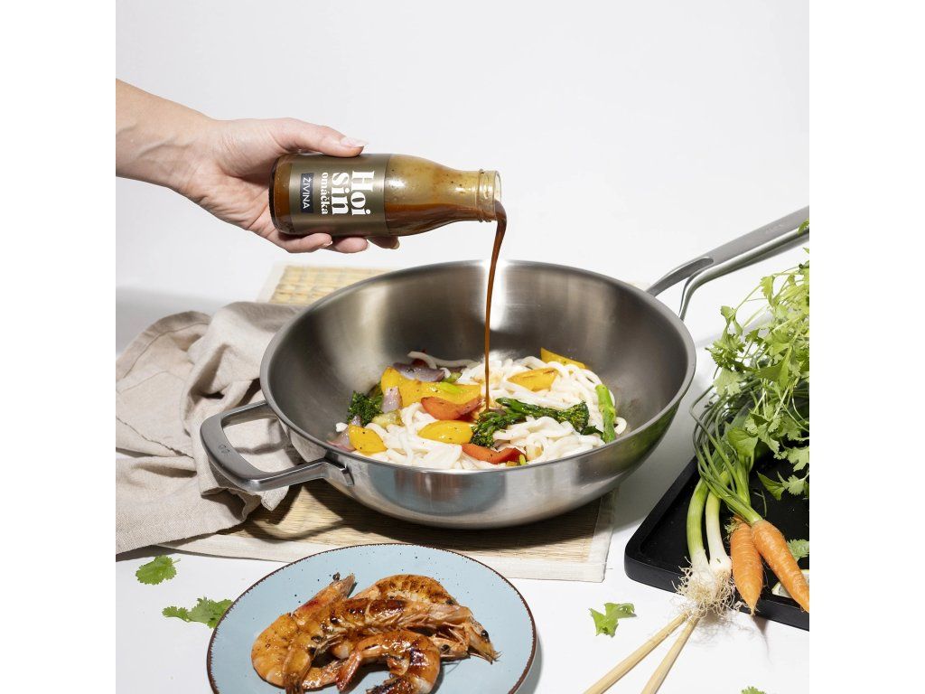 Tradiční čínská omáčka s vyváženou sladko-slanou chutí a mírnou pálivostí. V její chuti hrají prim arašídové máslo, med, zázvor a shiitake houby. Ideální pro marinování, grilování nebo jako dip.